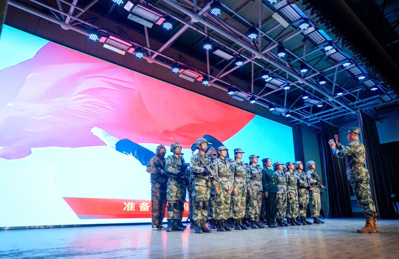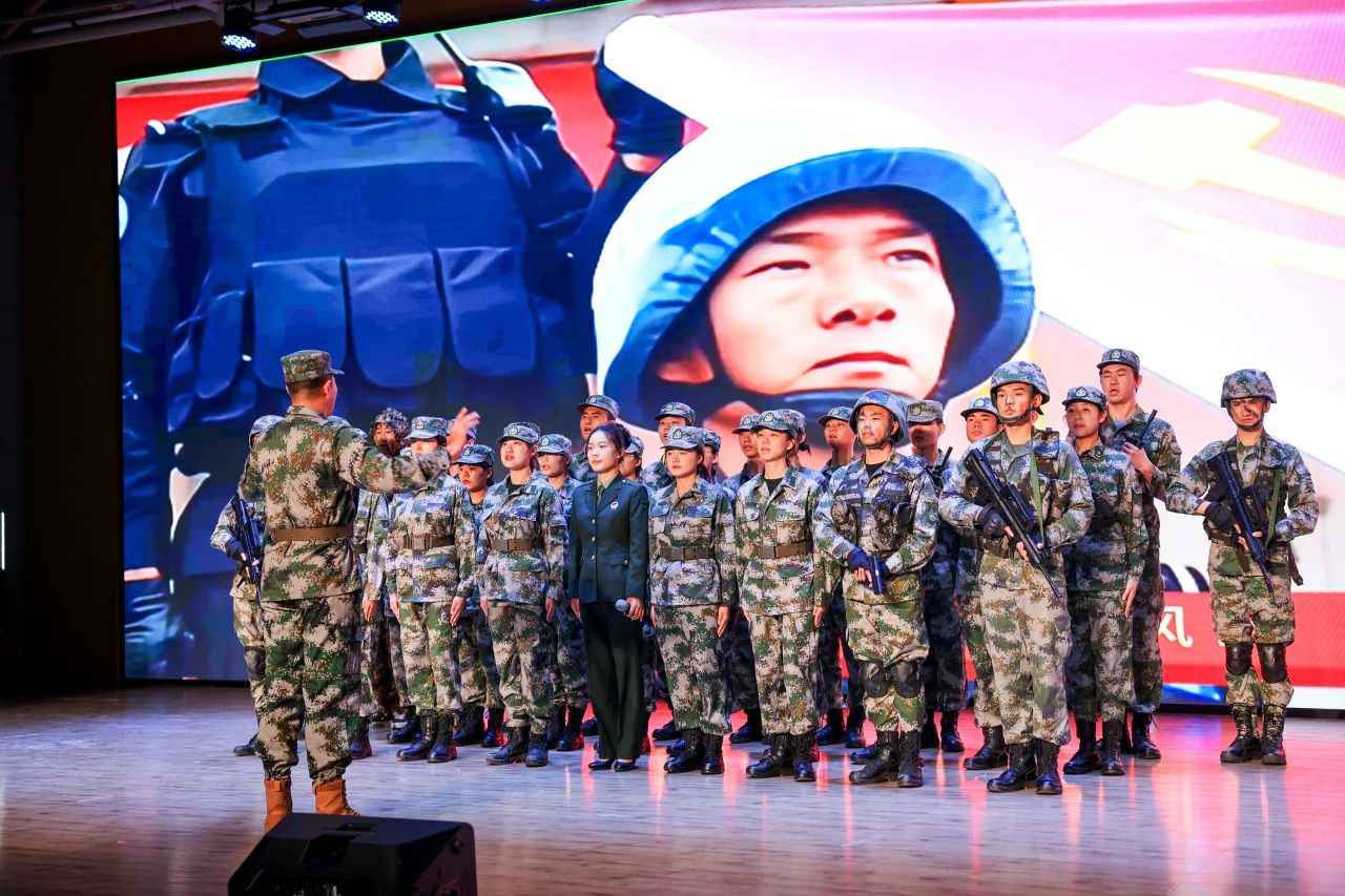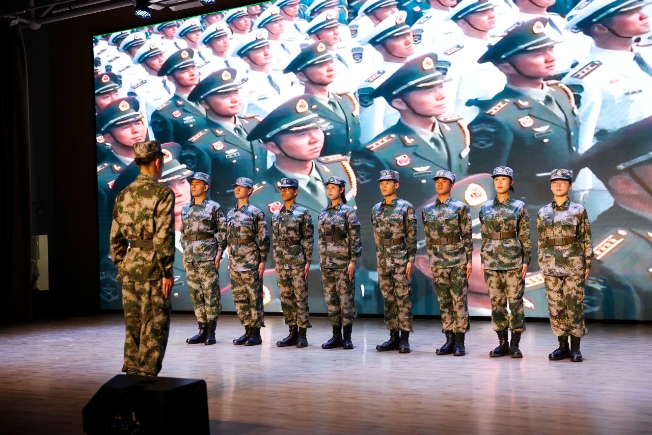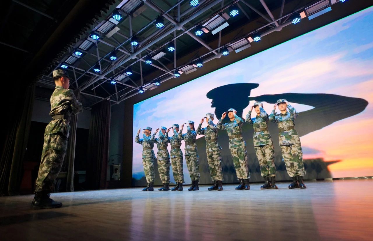 《当那一天来临》大合唱气势恢宏,唱出了青年学子对祖国的忠诚和投身军营的决心。