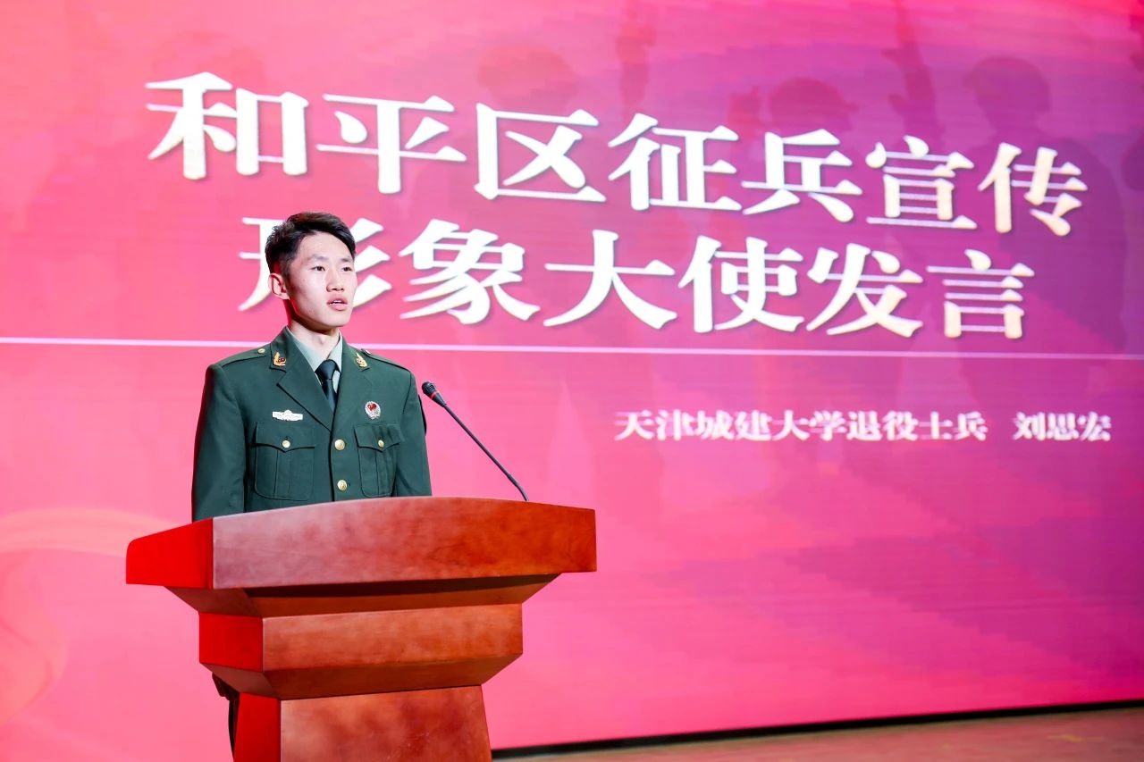 建筑学院22规划2班,原中国人民武装警察部队云南省总队迪庆支队刘思宏作为天津市和平区征兵宣传形象大使代表发言,为应征青年树榜样、立标杆,彰显了新时代青年学子自觉投身到强国强军伟大实践的爱国情怀,在校园中营造了“当兵最光荣”的浓厚氛围。