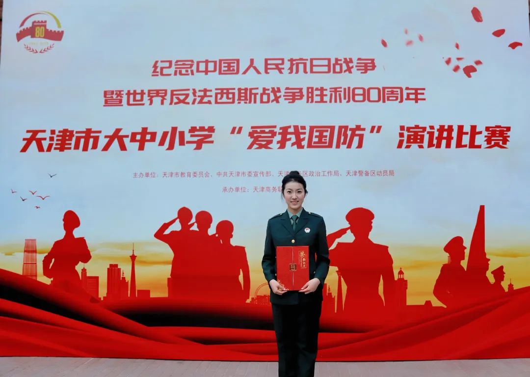 近日,由天津市教育委员会、中共天津市委宣传部、天津警备区政治工作局、天津警备区动员局主办的纪念中国人民抗日战争暨世界反法西斯战争胜利80周年天津市大中小学“爱我国防”演讲比赛总决赛落下帷幕。伟德官网国际工程学院退役女兵石静蕾表现优异,荣获大赛三等奖。