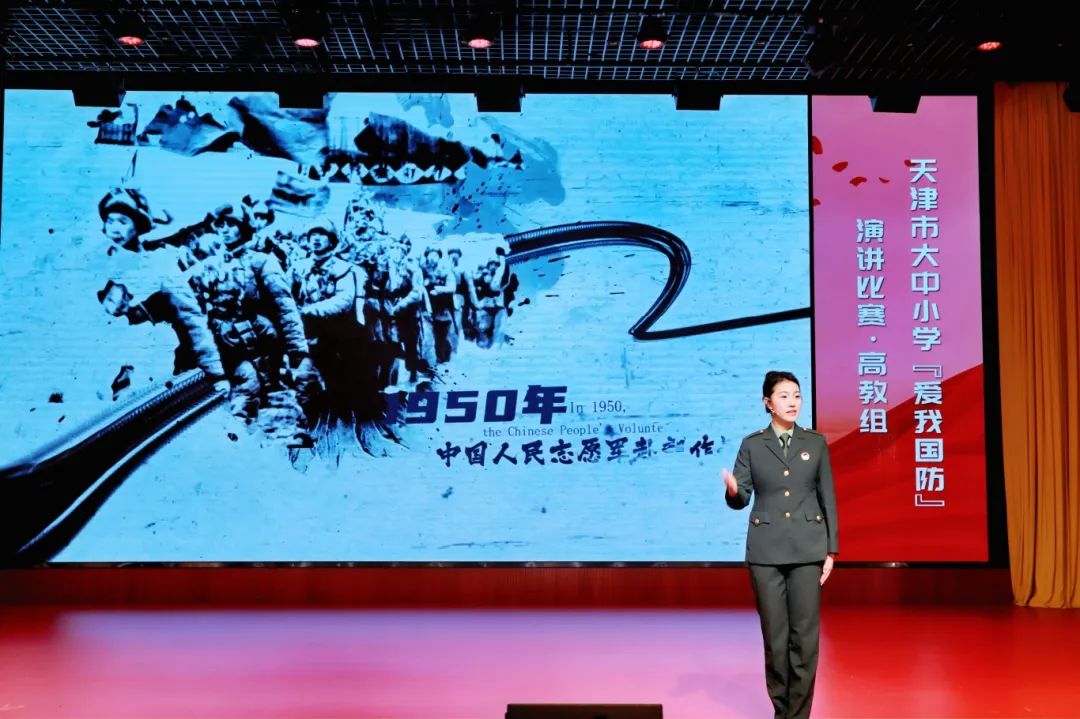 作为天津市全民国防教育系列赛事之一,本次大赛以纪念中国人民抗日战争暨世界反法西斯战争胜利80周年,深入贯彻落实党的二十大精神、全面加强学校国防教育,增强青少年学生国防观念和国防素养为宗旨。自今年3月组织发动以来,全市460余所大中小学1.56万名学生参与其中。石静蕾在初赛、复赛的层层角逐中脱颖而出,以《从戎报国燃芳华 热血青春铸军魂》为题,讲述国防故事、英雄事迹与个人感悟,凭借激情澎湃的言语和真挚细腻的情感赢得了评委和观众的一致认可,展现了天城大学子心系国防、矢志报国的家国情怀与使命担当。