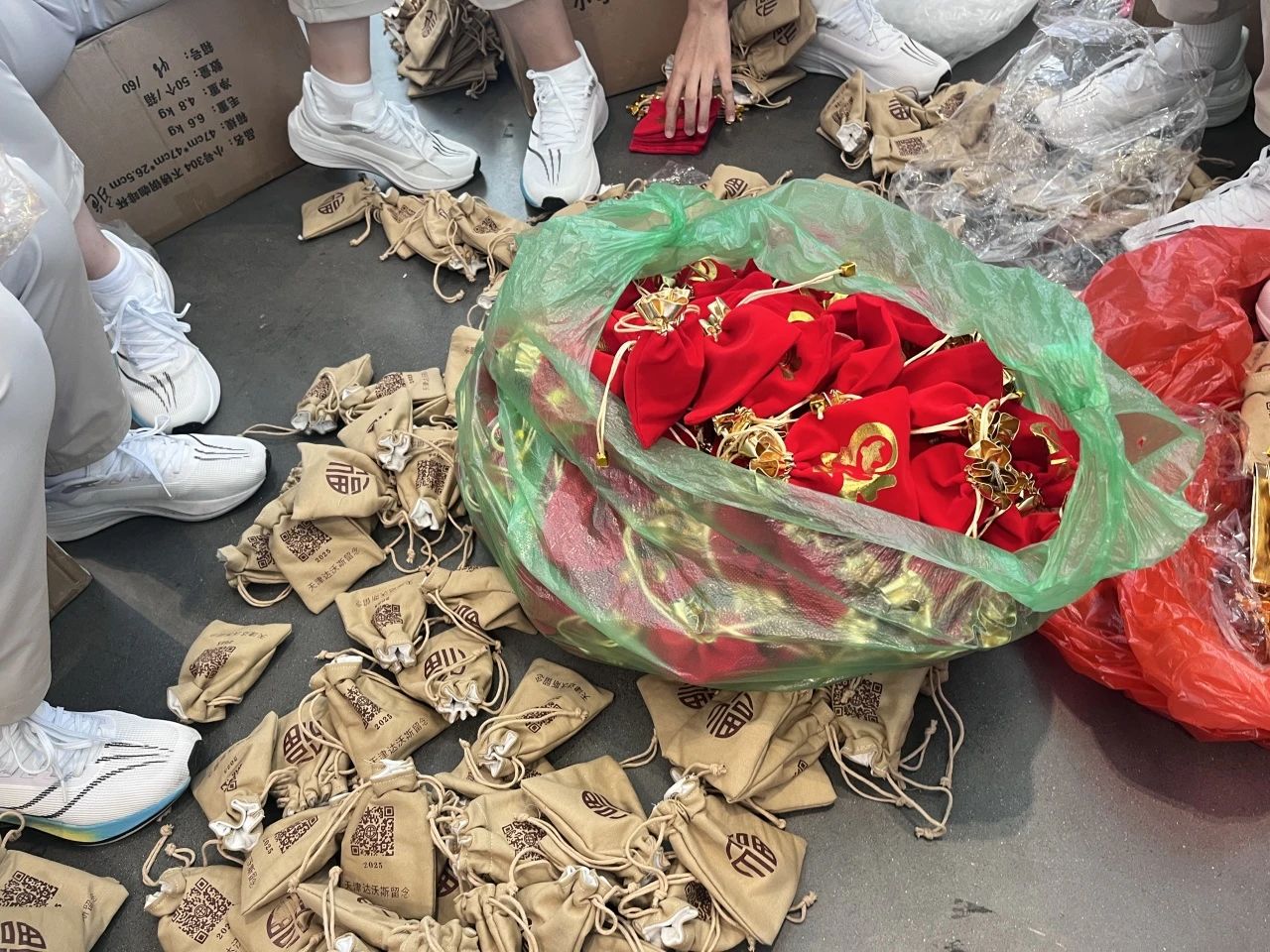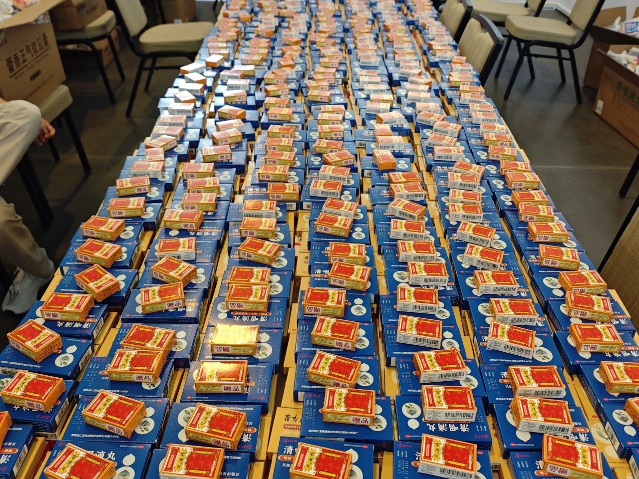 在物资保障的隐形战线上,志愿者们以“毫米级服务标准”构筑起高效运转体系。在筹备办公室,志愿者们化身“证件管理专员”,精准制作并分发1000余个志愿者工作证;在药品保障屋,13200件药品被志愿者们分装打包清点,落实每个高校的精准配比和分发;在礼品饮品区,志愿者们按要求进行分装打包,执行定时循环清洁整理制度,确保礼品物资干净整洁陈列。