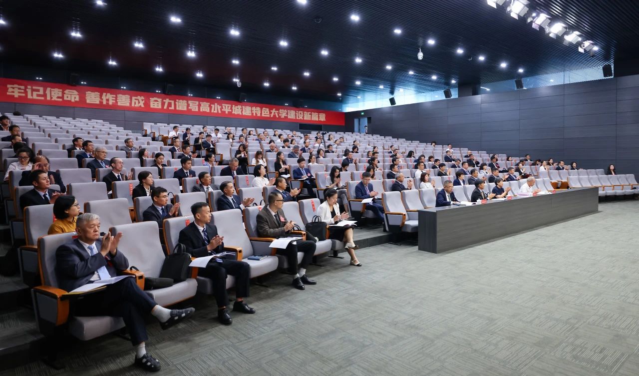 大会主题:高举中国特色社会主义伟大旗帜,坚持以习近平新时代中国特色社会主义思想为指导,深入贯彻落实党的二十大和二十届二中、三中全会以及市第十二次党代会精神和全国、全市教育大会精神,贯彻党的教育方针,落实立德树人根本任务,深化教育改革,统筹推进教育发展、科技创新、人才培养,破局开新、勇担使命、善作善成,奋力开拓高水平城建特色大学建设新局面,为教育强国建设贡献智慧和力量!