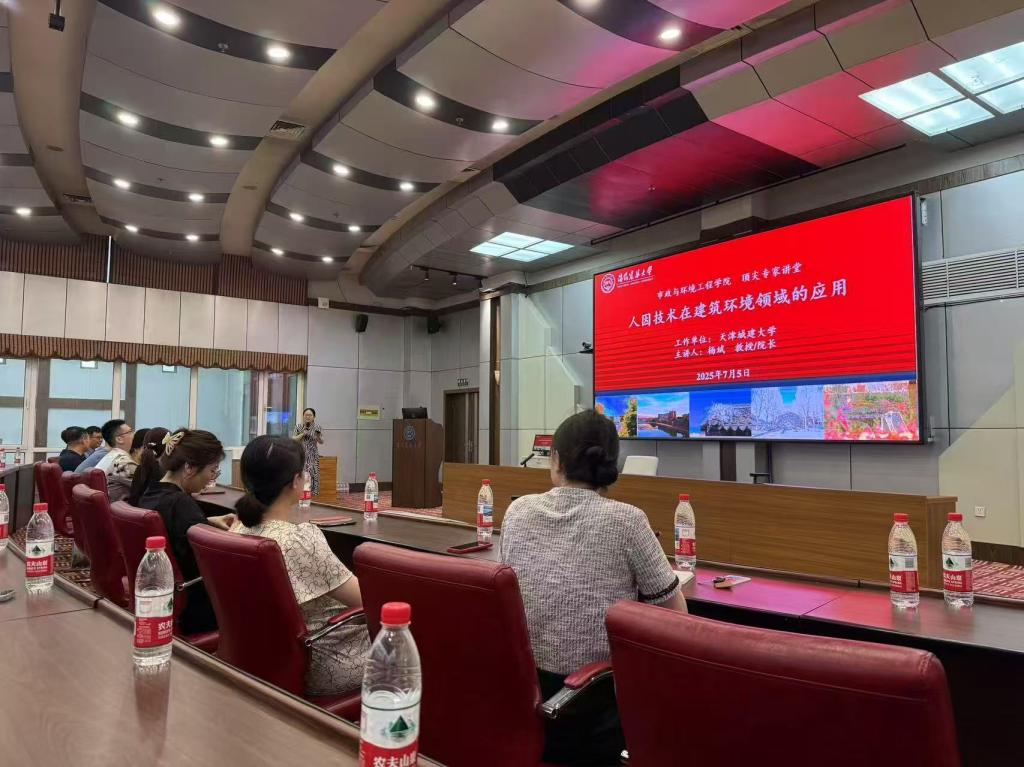 随后,杨斌教授应沈阳建筑大学校长助理吕石磊教授邀请前往沈阳建筑大学市政与环境工程学院交流,市政与环境工程学院领导班子成员、师生70余人参与交流,本次交流由刘馨教授主持。交流现场师生围绕技术实施的挑战、数据分析方法、伦理考量及具体应用场景等踊跃提问,杨斌教授逐一进行了深入浅出的解答,其严谨的治学态度与前瞻的学术视野赢得了在场听众的热烈掌声。会后,杨斌教授就本科生教育教学、研究生培养工作以及青年人才培养等方向展开了深入而广泛的交流。