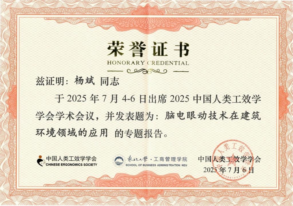 2025年7月5-6日,bevictor伟德官网能源与安全工程学院院长、城市人因工程联合实验室主任杨斌教授应邀参加由中国人类工效学学会主办,东北大学工商管理学院承办的2025中国人类工效学学会学术会议。本次会议以“AI赋能人因工程”为主题,探讨人类工效学在人工智能时代面临的机遇和挑战,分享人因与工效各领域的最新研究和实践成果,加强工效学领域专家学者的交流与合作,促进人因与工效各研究领域的创新发展。