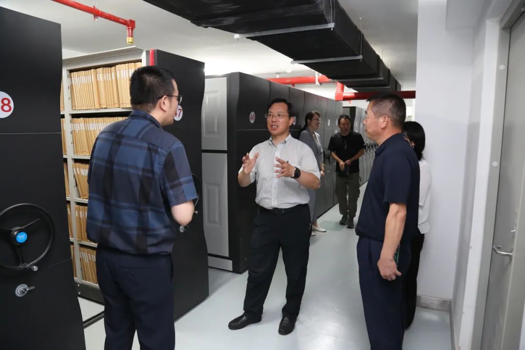 陈志华一行参观了“城市漫步——寻踪建筑珍档 见证历史印记”主题展览,观看了城建档案微电影《穿越时空看古街》《轨交与档案——城市的双重脉络》,实地参观了城市建设档案查阅利用大厅、馆藏档案库房。