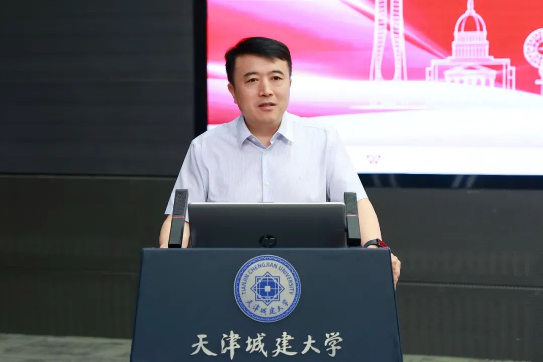 在全校上下深入学习贯彻学校第三次党代会精神之际,为深化课程思政建设,提升育人实效,7月14日,学校成功举办2025年课程思政教学比赛现场决赛。校党委书记史庆伟、副校长陈志华出席,组织部、宣传部、教工部、学工部、教务处、校工会等职能部门负责人,各学院教师代表作为专家评委参加决赛。各教学单位分管教学负责人及各专业教师代表近160人担任观众评委。