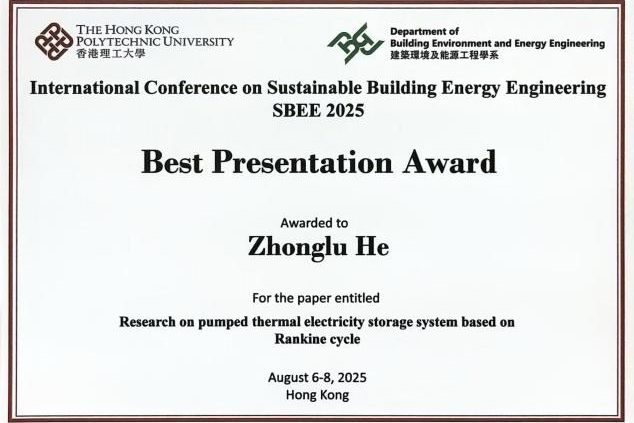 郭春梅教授受邀担任Advanced Energy-Efficient Building Cooling and Air Conditioning Technologies分论坛主席。由玉文副教授做题为《Research on the wetting rate of indirect evaporative coolers based on nanofluid spraying: A machine vision perspective》的专题报告。贺中禄老师在分论坛“可再生能源在制冷与空调领域的应用”中做题为《Research on pumped thermal electricity storage system based on Rankine cycle》的专题报告,介绍了热泵储电技术的发展现状,分享了团队在热泵储电系统设计方法研究方面的理论和实验研究成果。范敏超老师做题为《Operational Scheduling and Dynamic Pricing ofIntegrated Energy Systems lnvolving Energy Storage Service Providers in Game Theory》的分论坛报告,提出区域综合能源中多元储能以储能服务商参与能源市场的产供销的多主体博弈框架,形成能源定价策略、设备出力、储能的充放计划和用户需求曲线协同优化方法,为促进多能联储项目落地、提升储能商业地位提供有效思路。