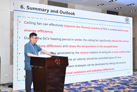 伟德官网能源与安全工程学院院长杨斌教授受邀参会担任Workshop 4“Air quality control and comfort design”分会场主席,并做题为《Study on thermal environment optimization in temporarily occupied space: Ceiling fan aided convective air supply system》的专题报告。