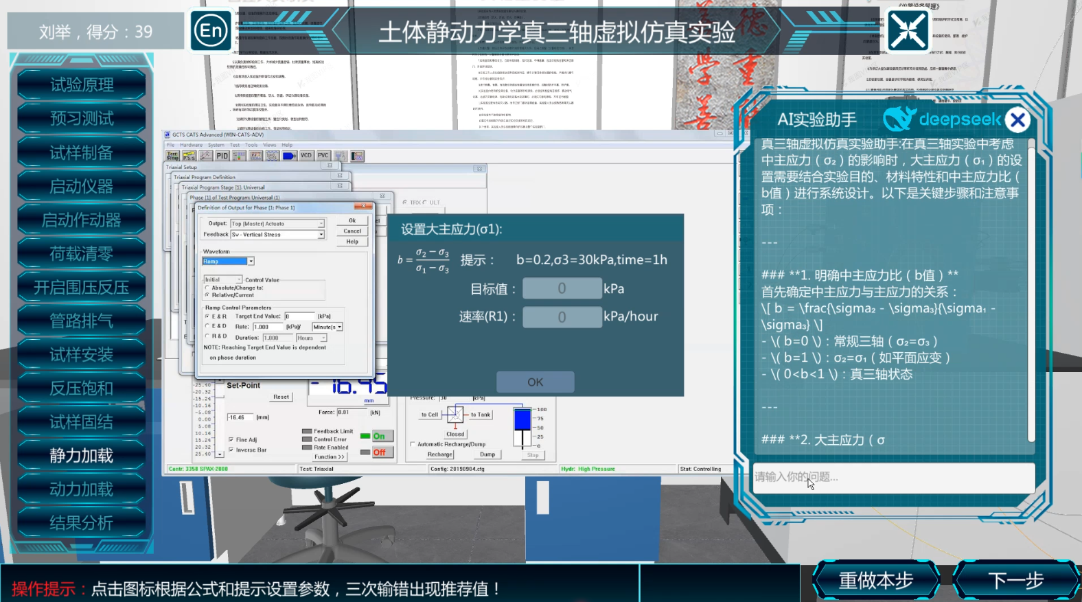 案例针对当前虚拟仿真实验教学存在的三大瓶颈:⑴学生在自主操作实验过程中,缺乏实时指导,导致部分实验完成度较差;⑵传统虚拟实验系统仅提供标准化流程,阻碍学生对实验机理的理解和实操能力的提升;⑶学生实验数据处理能力薄弱。伟德官网土木工程学院刘举副教授团队通过对学校自主研发的虚拟仿真实验《地下结构抗震虚拟仿真实验》(国家级)和《土体静动力学真三轴虚拟仿真实验》(省部级)两门课程进行二次开发,将DeepSeek大模型与虚拟仿真实验无缝对接,开发出“AI实验助手”,为虚拟仿真实验教学带来革命性升级。“AI实验助手”核心能力体现在三个方面:首先,可以跨时空给虚拟仿真实验提供实时的实验指导,有效提升实验完成率;其次,加深学生对实验步骤和实验机理的理解,提高学生的实操能力和复杂实验参数的设置能力;最后,提升了学生对实验数据处理和分析能力。通过“AI实验助手”赋能虚拟仿真实验构建出“操作效率大幅提高-分析深度有效增强-解决问题能力显著提升-充分彰显实验个性化”的实验能力培养闭环,为人工智能+虚拟仿真实验教学改革提供新的解决方案,助推虚拟仿真实验建设登上新台阶。