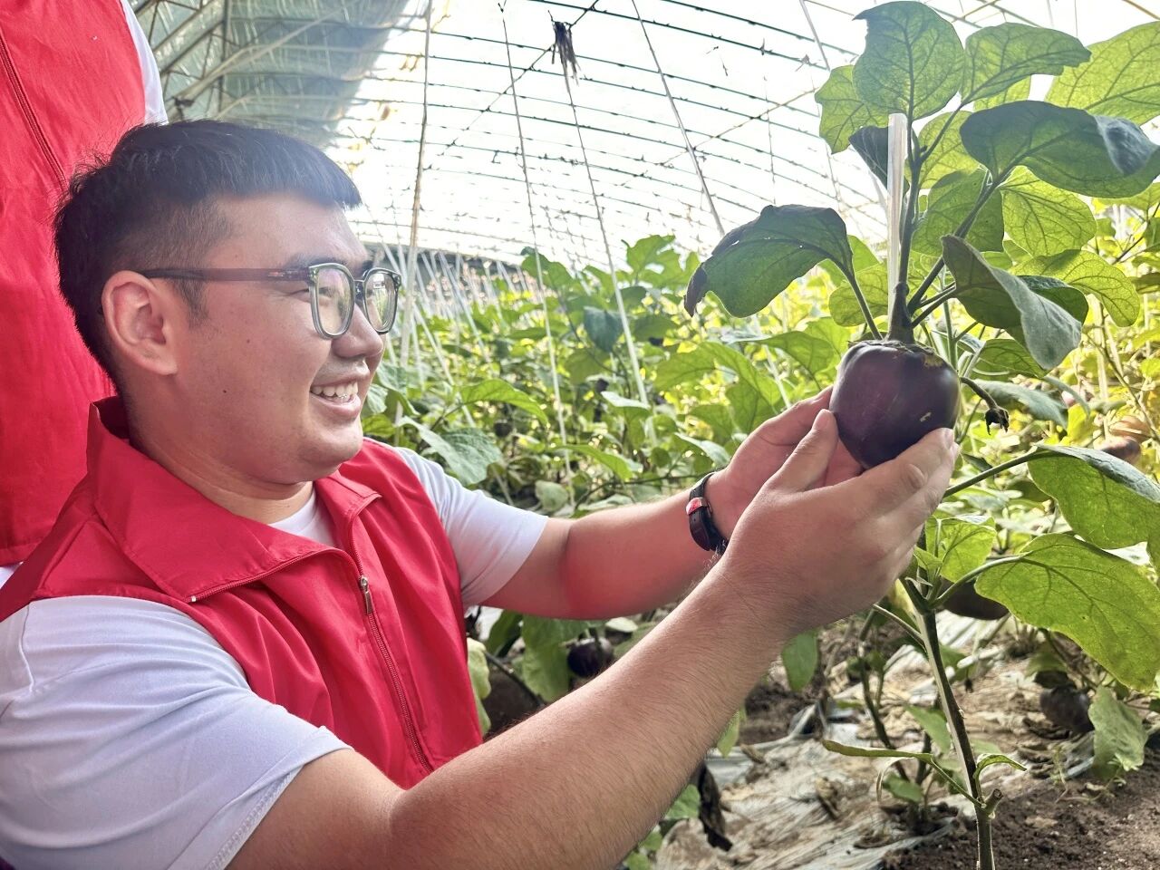 在“重走长征路”起点,我看到了防汛救灾的老照片,了解到了奋斗故事,那些“向险而行”的身影,让我真切读懂了“担当”二字在乡村振兴中的重量,也更明白我们青年该有的底色。在温室大棚外,王冬计老师的“智汇讲堂”像一把钥匙,打开了专业知识与乡村需求的连接。当秸秆转化清洁能源的技术细节、智慧温室里环境监测的原理从课本上的铅字,变成能改善老乡生活的实际方案;当“吹泡除臭”这样的专业术语,与大棚里的作物生长、农户的日常劳作紧紧相连,那些曾觉得抽象的理论突然有了温度。走进大棚,看着生物质采暖炉运转,观察茄子藤蔓在科技助力下舒展,我突然懂了“学以致用”的深意。这次实践让我明白,乡村振兴不是口号,而是需要我们用专业本领、用踏实劳动去践行的承诺。未来,我将带着这份在土地上生长出的感悟,让青春力量真正扎根在乡村的土地上。
