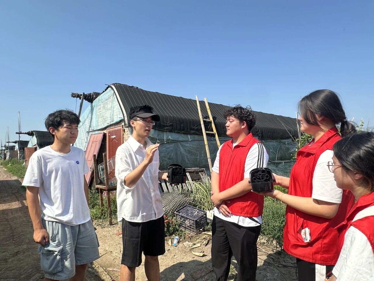 本次实践,王老师介绍了生物质供暖技术:燃料源于秋收后的秸秆,燃烧热量通过地下管网输送至各大棚土壤,保障适宜温度。棚顶铜色热管可吸收土壤多余水汽,经顶部蒸发后,凝结水滴用于灌溉。正午时,棚顶喷头喷出细密水珠,使棚内温度稳定在26℃左右,显著低于室外。堆肥区的“泡泡机”能有效处理农家肥,减少异味。我们有幸进入其中一个大棚近距离感受有机蔬菜的魅力。这场实践教会我的,不是某个公式或设备,而是重新认识了“能源”和“土地”的关系。以往认为能源技术高深,如今发现它存在于需保温的土壤、待生长的果蔬及农民的期盼中。作为能源学院的学生,我深刻体会到:我们的专业不该只在实验室里“纸上谈兵”,而是要走到土地里,去听土地需要什么,去看农民盼望什么——因为最好的能源技术,从来都不是实验室里的“杰作”,而是土地和人共同写就的“故事”。