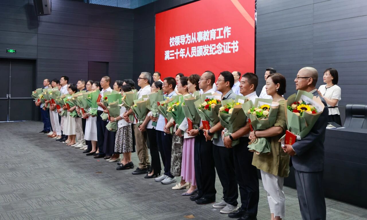 校领导为从教满三十年教师颁发纪念证书,青年教师向老教师致敬。三十年坚守初心,三十年立德树人,老师们将青春年华奉献给三尺讲台,用爱与责任为教育写下最质朴、最动人的注脚。青年教师接过立德树人的接力棒,让教育之光在天城大这方热土上接力耕耘,薪火相传。