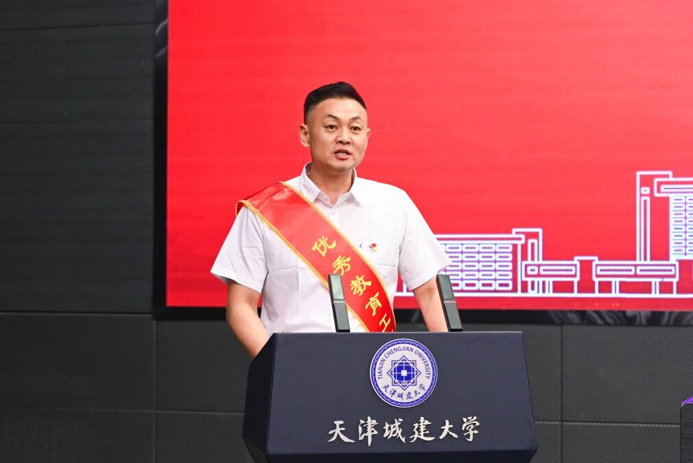 环境与市政工程学院教师王倩作为新入职教师代表,以《勤学善思赴新程,笃行实干践初心》为题,分享了初为人师的成长与收获,表示未来将大力弘扬教育家精神,秉承“重德重能 善学善建”的校训,奋发作为,苦干实干,以实际行动努力肩负起教师的光荣使命。