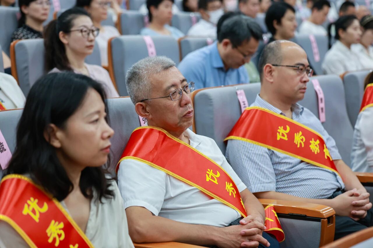 致敬师者担当,礼赞育人初心。校领导为荣获校级优秀教师和优秀教育工作者称号的80名教师颁发荣誉证书,为国家级人才计划青年项目入选者程星磊、天津市三八红旗手周晓洁等在思想政治、教学科研、指导学生竞赛、社会实践等各项工作中取得突出成绩的教师佩戴大红花,充分肯定他们敬业奉献、持之以恒的坚持与付出。