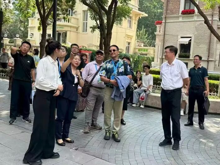 外国语学院翻译系教师张靖悦在峰会期间负责天津博物馆、古文化街等参访点位的讲解翻译工作。她在讲解前认真阅读点位翻译文件,并进行多次实地走访,为讲解工作做足准备。她生动讲解天津历史文化,充分展示了翻译服务的专业性。