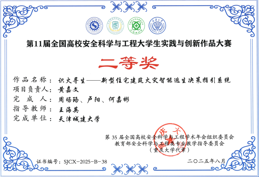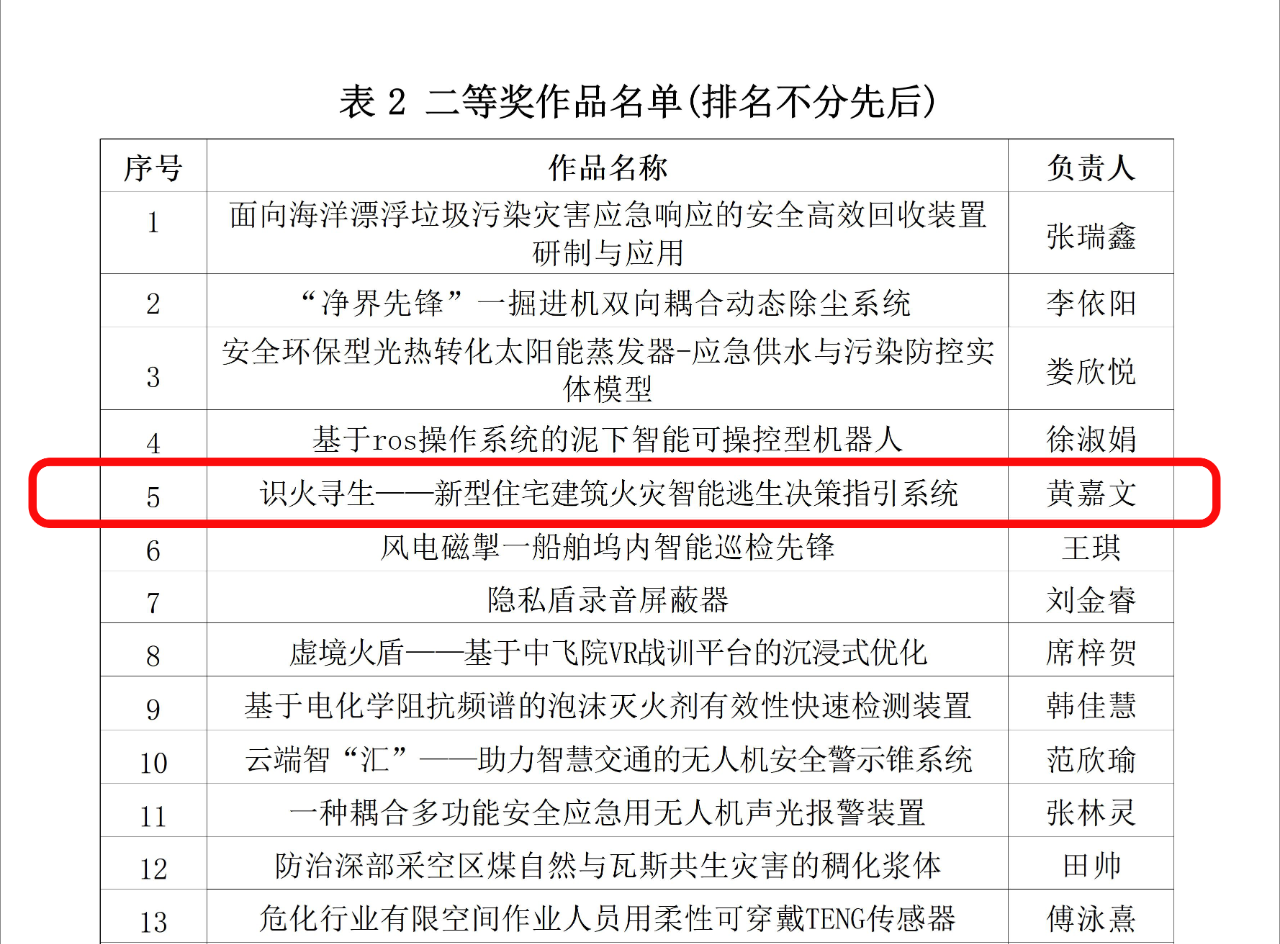 本次大赛吸引了中国矿业大学、中南大学、北京科技大学等全国众多高校优秀团队参赛,共有79所高校的378件作品参赛。经过多轮预赛选拔和激烈的决赛答辩,伟德官网参赛队伍凭借扎实的专业基础与出色的创新能力脱颖而出,最终两项作品荣获国家级奖项。王海英老师指导的作品《识火寻生——新型住宅建筑火灾智能逃生决策指引系统》获全国二等奖,孙于萍老师指导的作品《极隧先锋——有限空间智能处置系统》获全国三等奖。