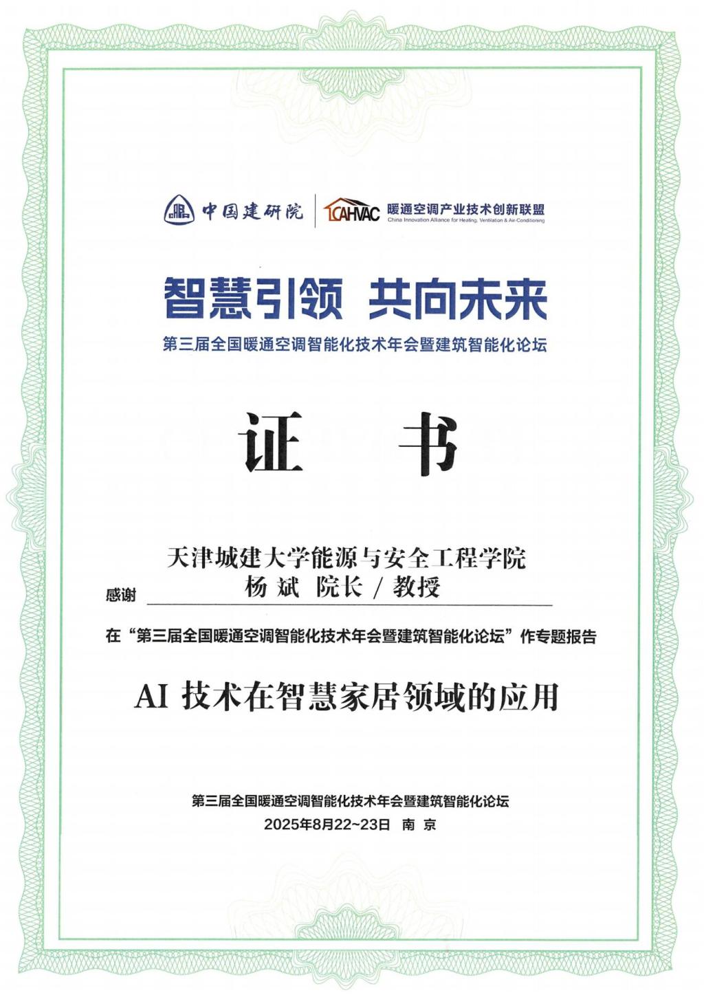 近日,伟德官网能源与安全工程学院院长杨斌教授应邀参加在南京举办的“第三届全国暖通空调智能化技术年会暨建筑智能化论坛”,作题为“AI技术在智能家居领域的应用”的报告。会后,杨斌教授应邀访问了南京工业大学城市建设学院。