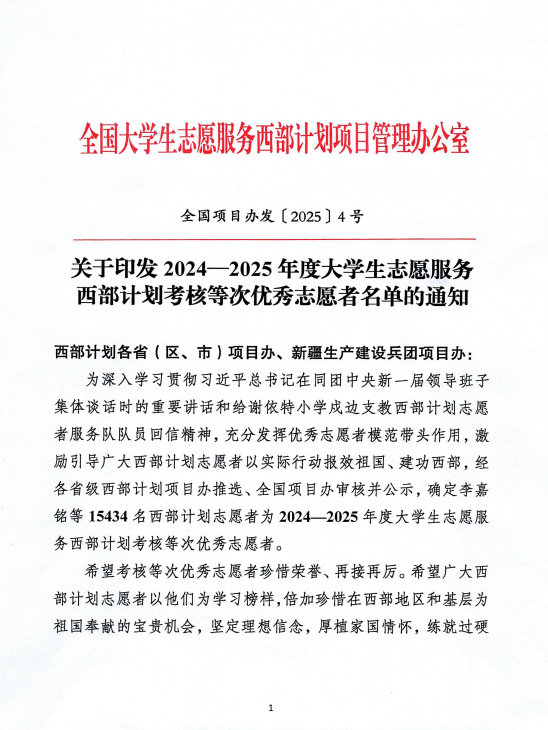 2024-2025年度大学生志愿服务西部计划