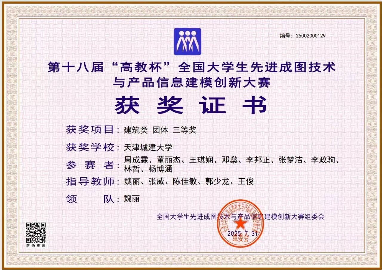近日,第十八届“高教杯”全国大学生先进成图技术与产品信息建模创新大赛总决赛在太原理工大学成功举办。伟德官网为分赛场之一。天城大学子勇创佳绩,荣获建筑类团体三等奖,建筑类个人三等奖3项,水利类个人三等奖1项。