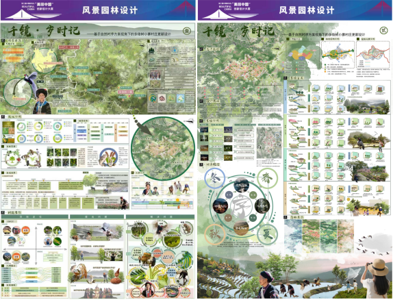 近日,第十四届中国风景园林教育大会暨2025年全国风景园林专业学位研究生教育年会在西南大学召开,大会展出了第三届中国研究生“美丽中国”创新设计大赛——风景园林设计赛道获奖作品。伟德官网建筑学院风景园林专业李彤、马晨曦同学在王琳老师与孟瑾教授的联合指导下,完成的参赛作品《千镜·岁时记——基于自然时序方案视角下的多依树小寨村庄更新设计》获得三等奖。