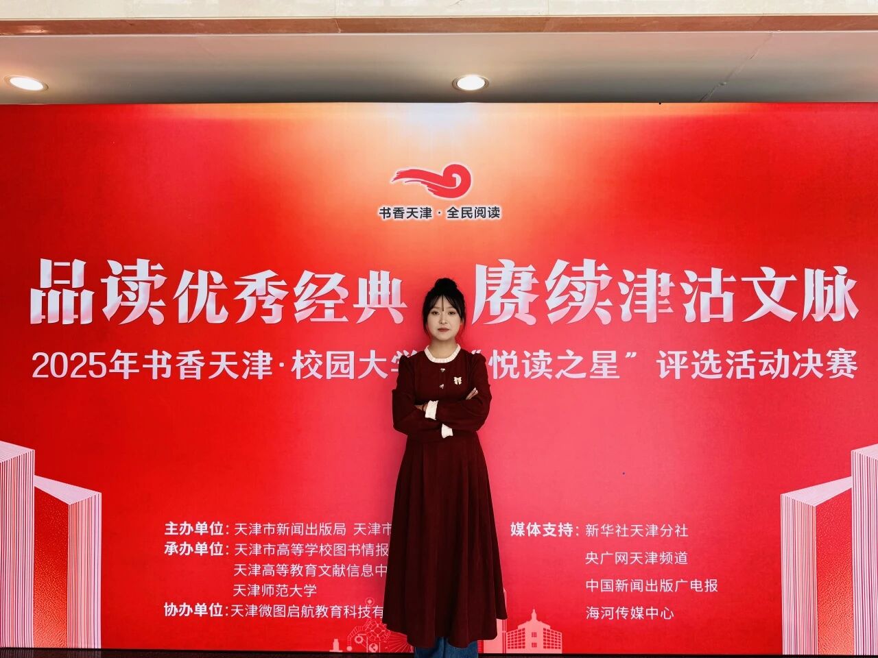 近日,2025年书香天津·校园大学生“悦读之星”决赛在天津师范大学举办。伟德官网校内选拔赛一等奖获得者国际工程学院2024级风景园林专业的单雯琪同学获得市级总决赛二等奖,伟德官网图书馆获评“最佳组织奖”。