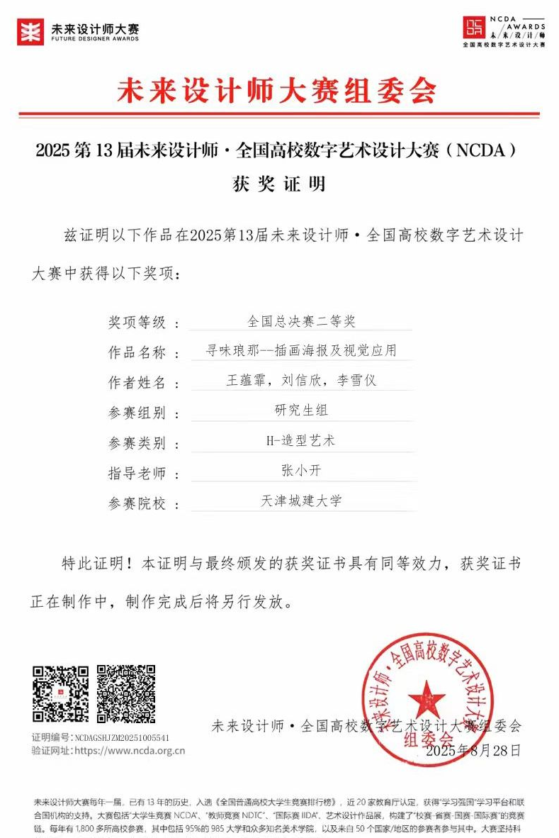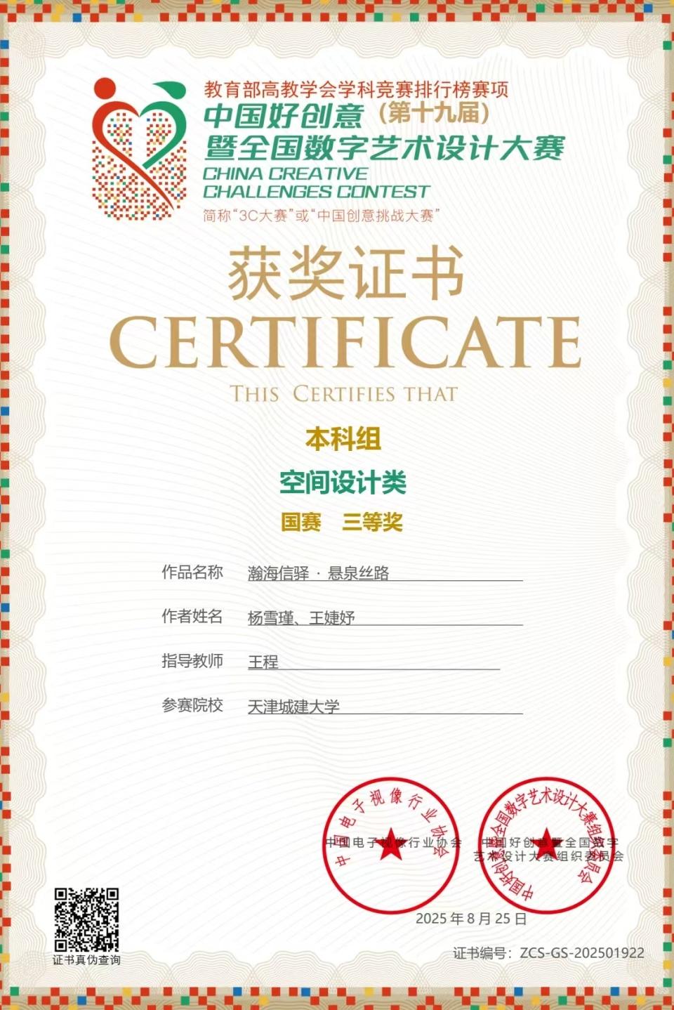 每一份荣誉的背后,都是学子们才华与汗水的结晶,更是学校教师深耕人才培养沃土的丰硕成果。一直以来,学校始终秉持“以赛促学、以赛促教、以赛促创、以赛促用”的教育理念,将学科前沿赛事与课堂教学、实践创作有机融合,系统构建高水平创新实践平台,全面激发学生的创新潜能与实践能力。此次在多项权威赛事中取得优异成绩,不仅充分展现了同学们扎实的专业素养与综合能力,更是学校持续推进人才培养模式创新、教育教学质量稳步提升的生动体现。未来,学校将坚定不移地践行立德树人使命,持续深化人才培养模式创新,以更高的标准、更实的举措,全面提升教育教学质量与学生的核心竞争力,助力天城大学子在更广阔的舞台中放飞青春梦想,成就精彩人生。