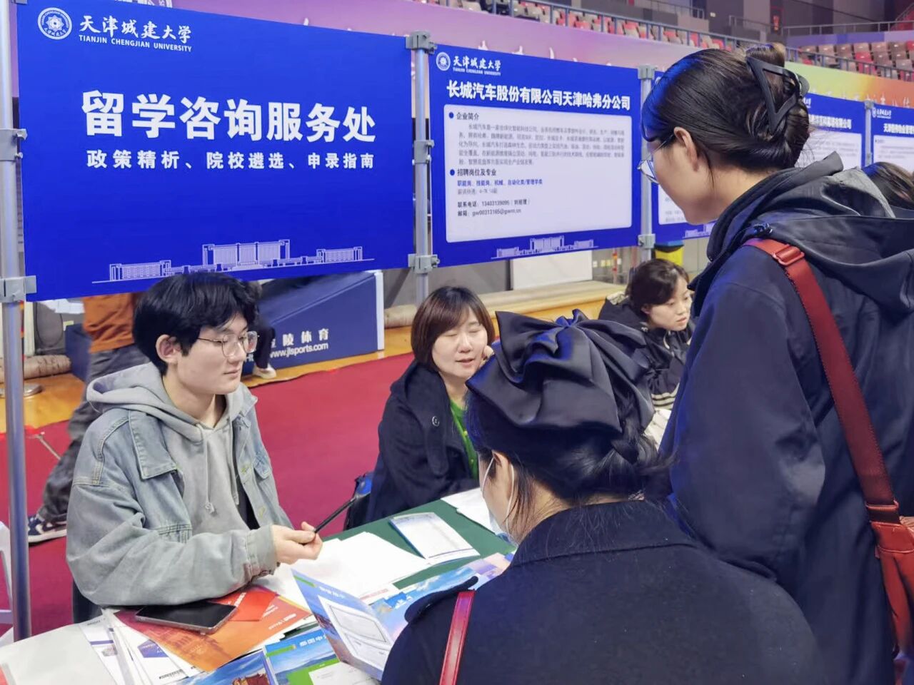 据悉,此次招聘会共邀请用人单位110余家,其中,国有企业占比50.23%,民营企业占比47.74%,三资企业占比2.03%。涵盖土木、建筑、制造、化工、机械、材料、新能源、工程管理、计算机等多个行业,累计提供岗位3894个,招聘需求达8972人。招聘会设有天津市侨商会专区、天津市建设监理协会专区,西青区人社局专区、和平区人社局专区,现场还专门设置了暖心服务专区,汇聚了天津市就业政策咨询、大学生征兵工作服务、“筑心”生涯工作室指导、出国留学咨询等多元服务,为毕业生提供“一站式”的精准就业支持。招聘会现场气氛热烈,用人单位与毕业生积极交流,学生投递简历踊跃,300余名毕业生初步与单位达成签约意向。