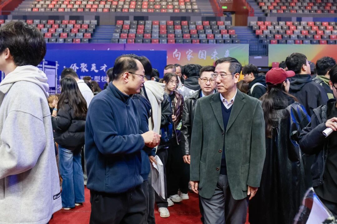 在校领导陪同下,李占勇一行深入招聘会现场,与企业代表及毕业生亲切交流,详细了解企业人才需求、岗位设置及毕业生求职意向与就业进展。随后,李占勇前往第四会议室参加“爱津留津·乐业西青”主题宣讲会,听取西青区南站科技商务区招商部招商主管李俪平推介西青区整体发展情况。李占勇强调,高校作为人才培养主阵地,立足城市发展需要,深化产教融合,不断拓展优质就业资源,推动校企供需精准对接,这既是实现毕业生高质量就业的关键举措,也是赋能企业创新发展、服务区域经济社会高质量发展的战略支撑。他勉励同学们将个人理想融入天津的发展之中,强化爱津留津理念,扎根天津、服务天津,将个人成长融入城市发展,为建设现代化天津贡献青春力量。