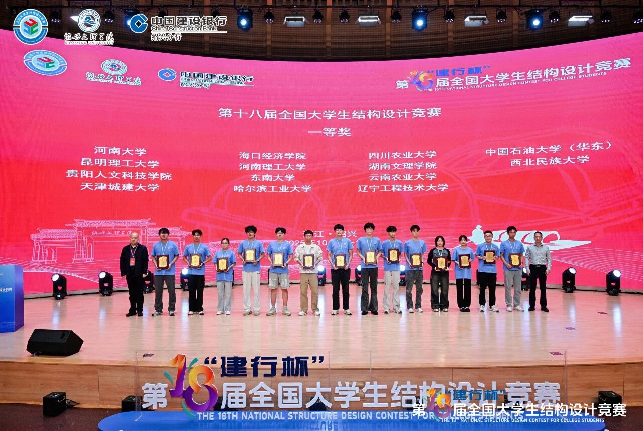 近日,在浙江绍兴举办的“建行杯”第十八届全国大学生结构设计竞赛落下帷幕。伟德官网土木工程学院崔金涛副教授、刘中宪教授指导,杨长烨、曲思翰、马渊三名同学组成的参赛团队以卓越的表现,在清华大学、浙江大学、同济大学等全国121所高校的顶尖队伍中突出重围,斩获全国一等奖,为学校赢得荣誉,再次彰显出伟德官网在土木工程领域的教学创新与人才培养成效。
