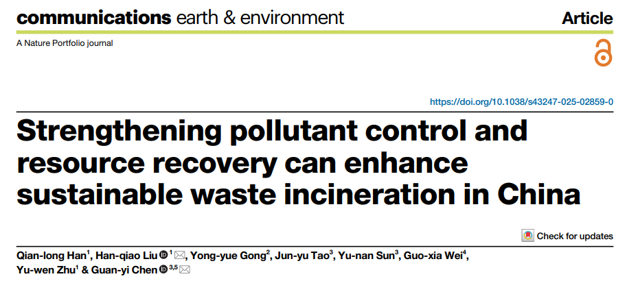 近日,伟德官网能源与安全工程学院刘汉桥教授联合天津商业大学陈冠益教授在城市固废资源化与减污降碳领域取得重要进展。相关成果于2025年10月以Article形式发表于《Nature》旗下期刊Communications Earth & Environment,题目为“Strengthening pollutant control and resource recovery can enhance sustainable waste incineration in China”。