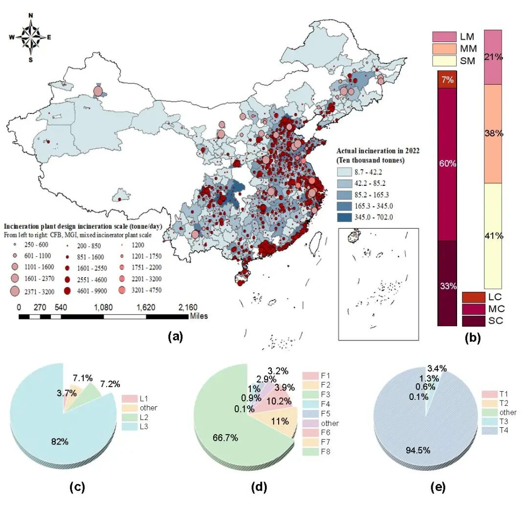 图1. 中国垃圾焚烧厂的空间分布和污染物控制技术现状: