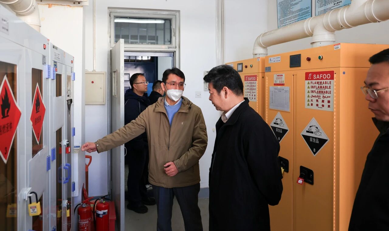 检查过程中,阎兵深入各学院危险化学品库房、实验室等安全关键区域,进行实地查看。在危化品库房,阎兵详细询问了各类危化品的采购审批流程、储存条件是否符合规范、领用登记制度是否健全、废弃品处置是否合规等细节问题。他强调,危化品库房作为安全重地,必须确保安全警示标识清晰、醒目、周全,各类消防应急设施必须配置齐全、功能完好,并定期进行检查维护,确保随时处于可用状态。