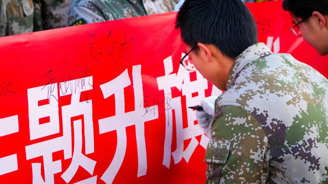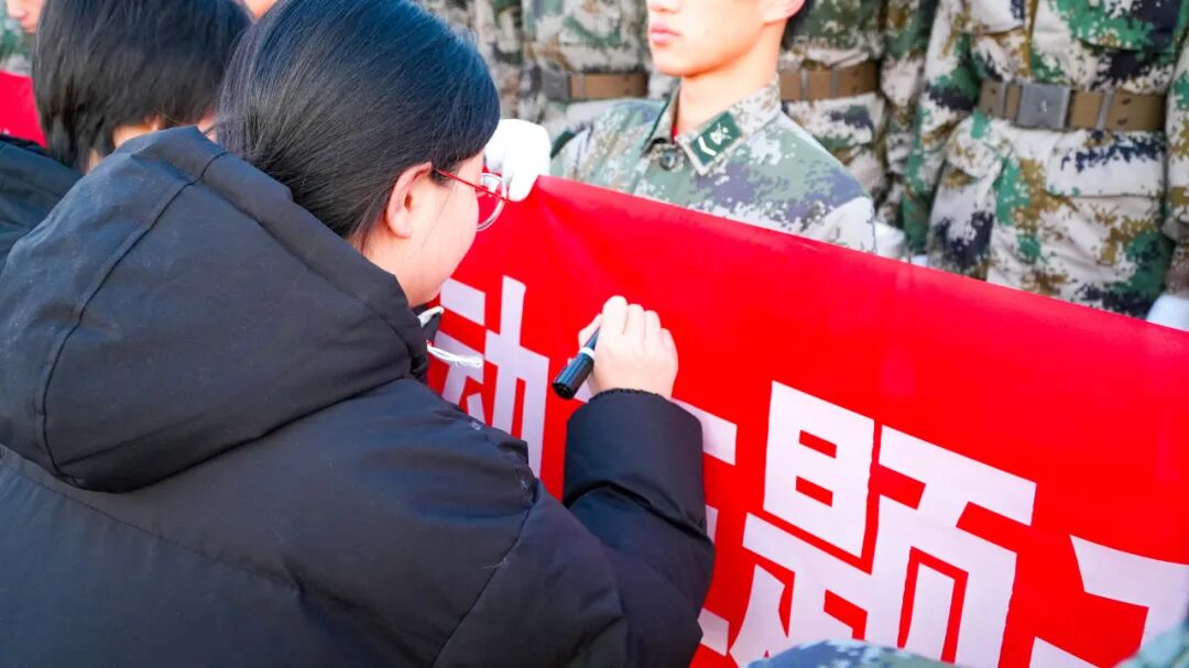 师生纷纷在和平许愿条幅上签字,充分表达铭记历史、爱党报国的信念,努力把个人的前途与祖国的命运紧密相连,为实现中华民族伟大复兴的中国梦贡献青春力量。学工部相关负责人鼓励青年学生要勤奋学习、夯实专业根基,以实干锤炼过硬本领,勇担时代使命,在创新奉献中投身强国实践。同时注重修身立德,传承优良传统,厚植家国情怀,将青春理想融入报国行动,勇做民族复兴的坚实脊梁。