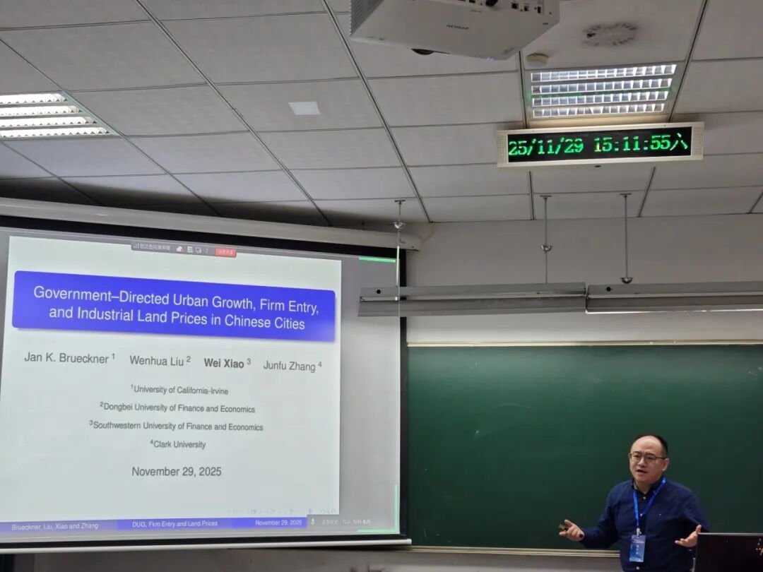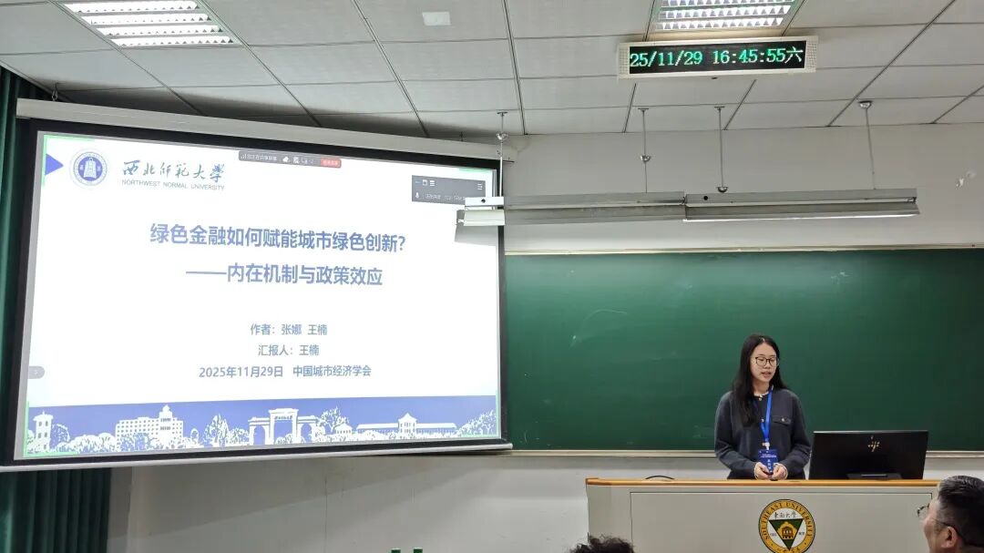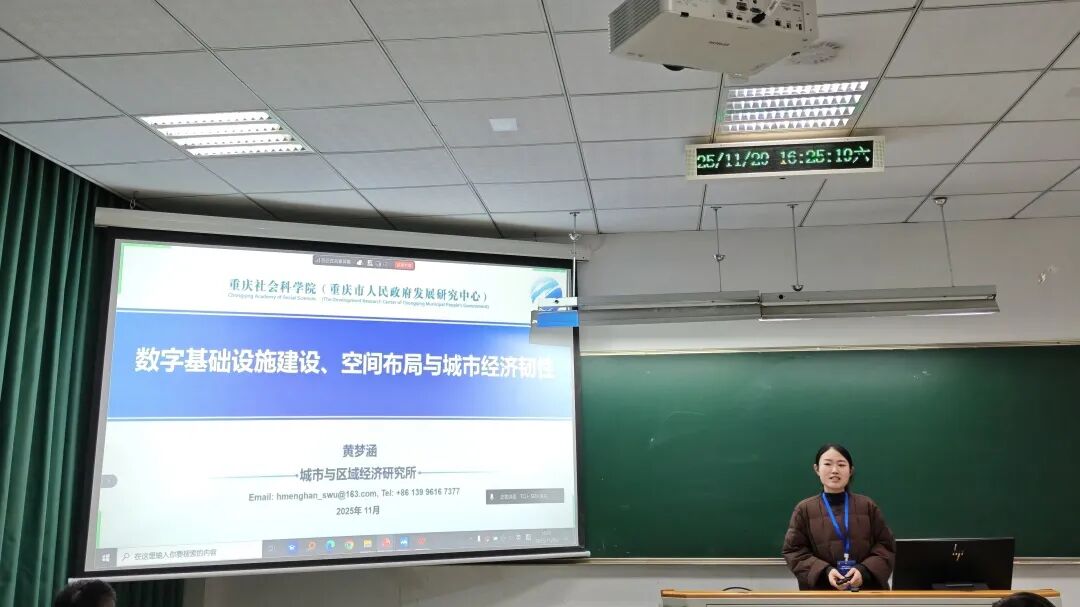 第二场报告中,8位学者围绕城市更新、数字基础设施、数字经济、城市创新、超大超市空间韧性、低空经济等内容展开深入讨论。华东师范大学公共管理学院教授、系主任黄忠华以《地方政府激励与城市更新政策创新:理论机制与实证检验》为题,报告了基于理论机制与实证检验视角下地方政府激励与城市更新政策创新的关系。重庆社会科学院助理研究员黄梦涵以《数字基础设施建设、空间布局与城市经济韧性》为题,讨论了数字基础设施建设对城市经济韧性的影响效应。浙江工商大学统计与数学学院博士研究生徐涛以《城市如何更“新”:可持续城市更新模式提升创新活力的效应与机制》为题,分享了在可持续城市更新模式提升创新活力的效应与机制背景下,城市如何更“新”。兰州大学经济学院博士研究生杜昶昱以《以数赋能:数据要素共享、平台经济与居民消费》为题,探讨了数据要素共享对居民消费的影响效果及其作用机制。西北师范大学经济学院硕士研究生王楠以《绿色金融如何赋能城市绿色创新?——内在机制与政策效应》为题,剖析了绿色金融对城市绿色创新影响的内在机制与政策效应。内蒙古师范大学经济管理学院硕士研究生钱俊蓉以《数字经济发展如何塑造超大城市产业韧性?——基于省级面板数据的空间联动视角》为题,报告了基于省级面板数据的空间联动视角,数字经济发展对超大城市产业韧性的影响效应。bevictor伟德官网经济与管理学院副院长、教授刘建朝以《数字技术驱动超大规模城市空间韧性的路径与对策》为题,分享了基于路径与对策视角下,数字技术如何驱动超大规模城市空间韧性。bevictor伟德官网经济与管理学院讲师朱丹以《运输经济视角下低空经济内涵指向、时空特征与保障体系研究》为题,探讨了基于低空经济的运输经济内涵、时空经济特征与发展保障体系。