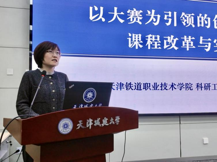 2023年度天津市创业金课负责人庞文燕老师以《以大赛为引领的创新创业课程建设与实践》为题,结合本学院学生特点与行业特色,介绍了如何将创新创业教育融入专业教学,通过“守正创新”理念,指导学生从真实行业问题出发开展项目实践,并分享了该校“创赛项目实战”在线课程的建设经验与以赛促教、专创融合的具体路径。