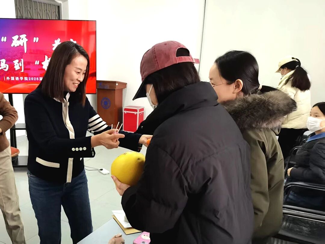 外国语学院则以果传情,寓意深长。一枚柚子,一声加油,寓意“一路‘柚’我相伴”;金灿灿的橙子,承载心想事“橙”、考研“橙”功的美好祝愿。老师们更以自身经历激励学子,叮嘱大家劳逸结合、保持状态,以最好的姿态迎接挑战。