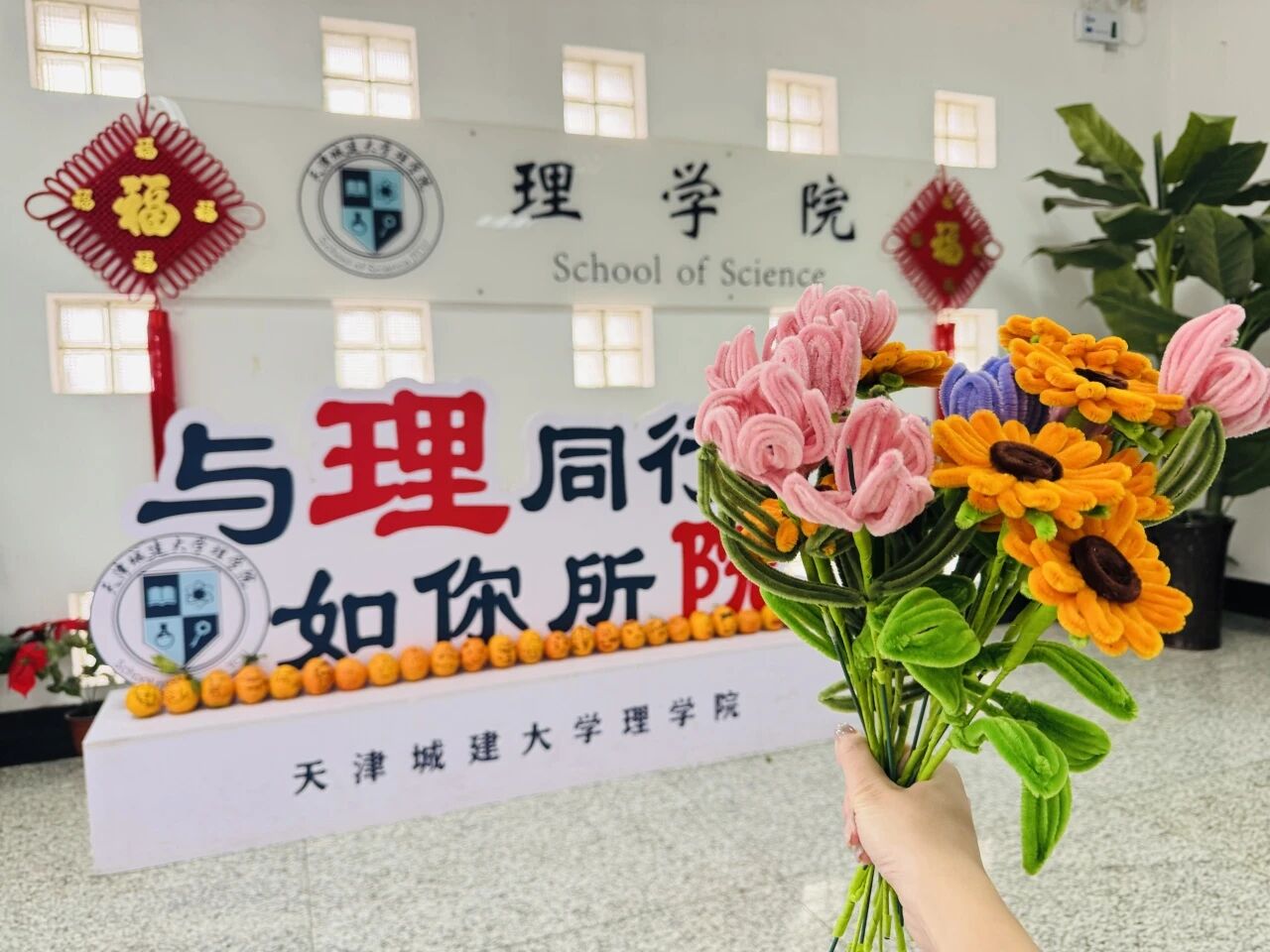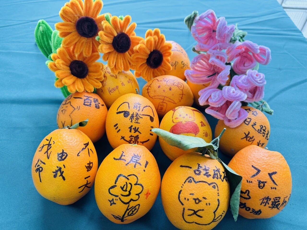 理学院举办“考研加油站”暖心活动,师生们用扭扭棒制作独一无二的手工花束,并在橙子上手绘“橙风破浪,一战成硕”等祝福寄语,为考研学子传递真诚的敬意与鼓励。辅导员们也化身“陪考人”,结合自身经验答疑解惑,叮嘱考前注意事项,鼓励大家“以平常心赴考,以硬实力取胜”。