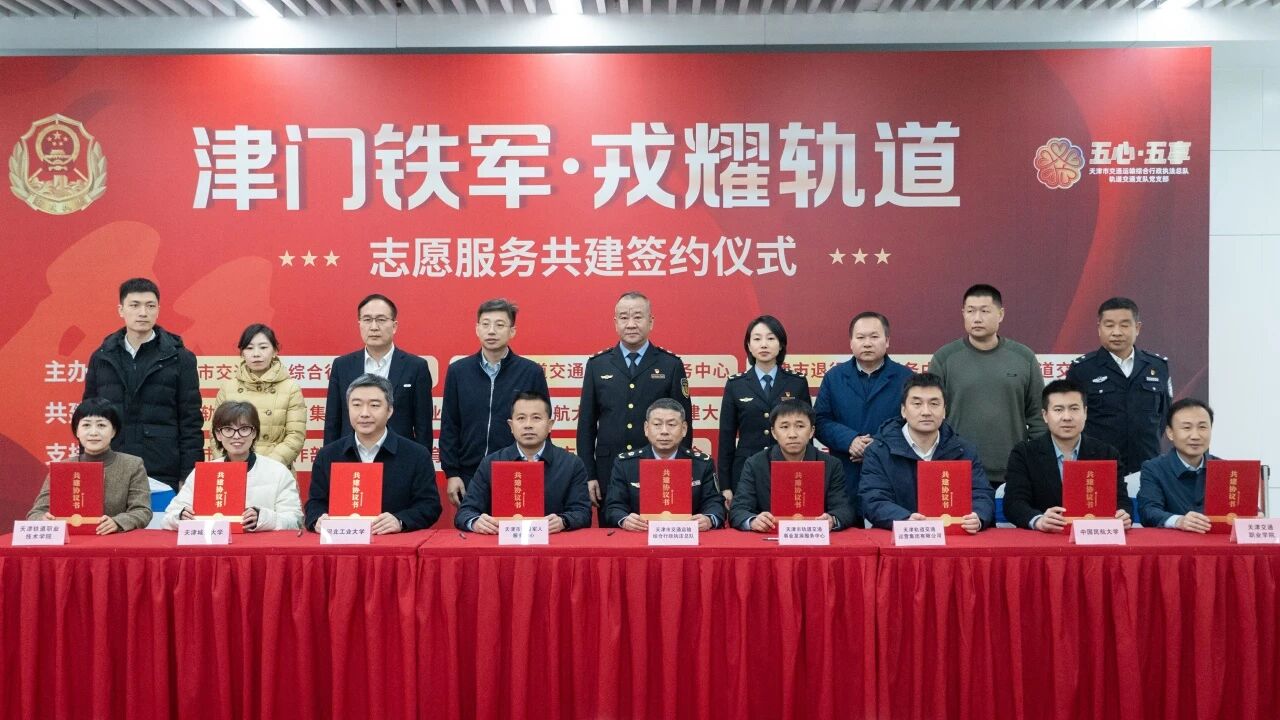 近日,“津门铁军・戎耀轨道”志愿服务共建签约仪式在天津地铁5号线文化中心站举行。伟德官网经济与管理学院作为共建单位之一,与天津市交通运输综合行政执法总队、天津市轨道交通事业发展服务中心、天津市退役军人服务中心、天津市轨道交通运营集团有限公司、河北工业大学、中国民航大学、天津交通职业学院、天津铁道职业技术学院9家政、企、校单位共同签署《志愿服务共建合作协议书》,正式加入这一多方联动的志愿服务联盟。