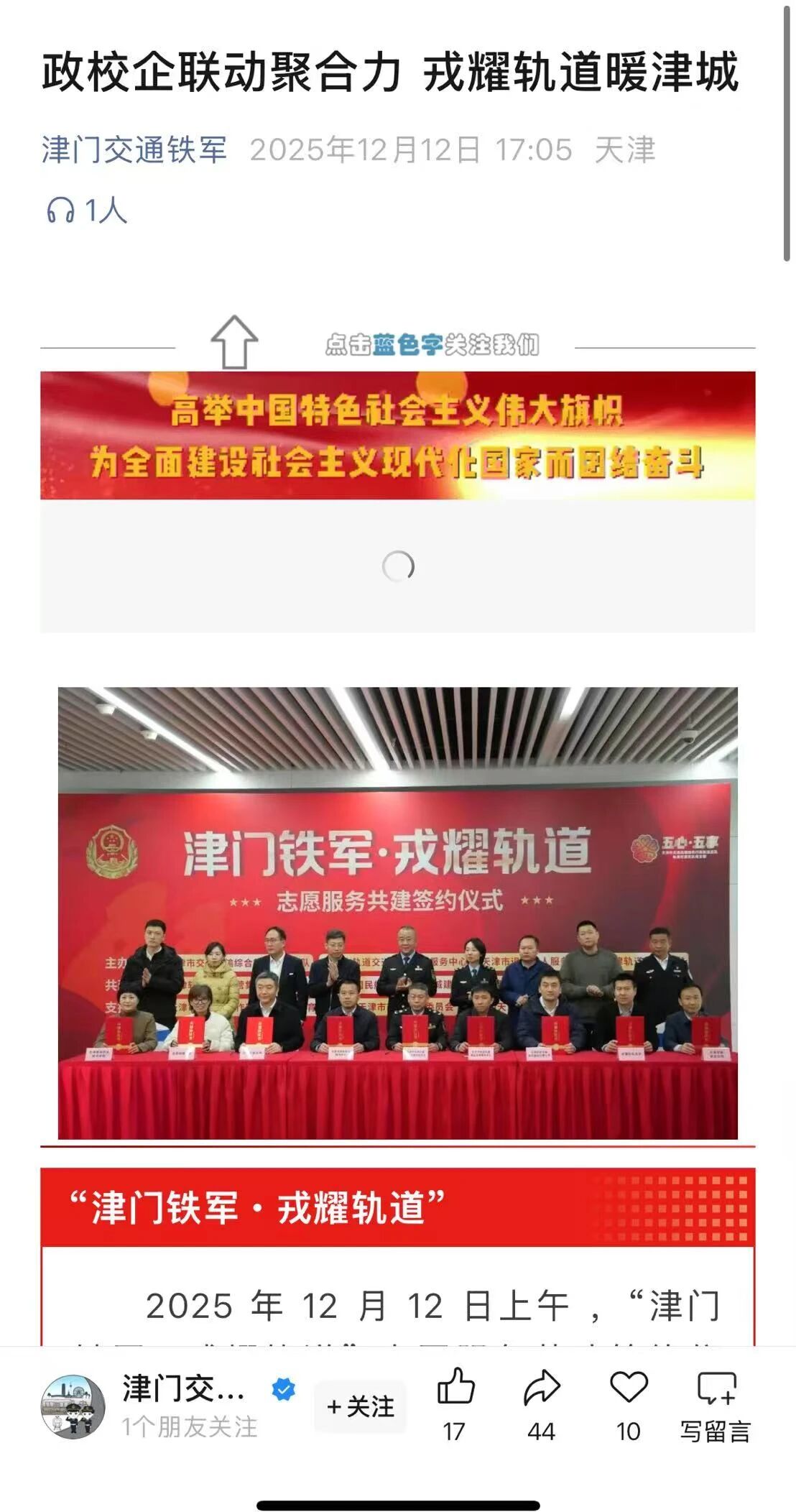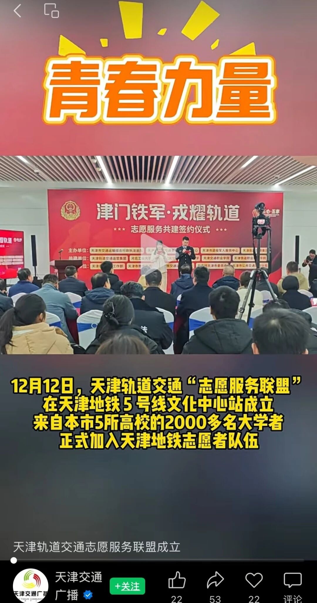 市委社会工作部、市教委学生处、市交通运输委轨道交通处、团市委社联部、市公共交通治安分局、轨道交通运营集团等相关负责人出席仪式。活动受到中央广电总台国际在线、天津交通运输、天津交通广播、津门交通铁军等多家媒体关注报道。
