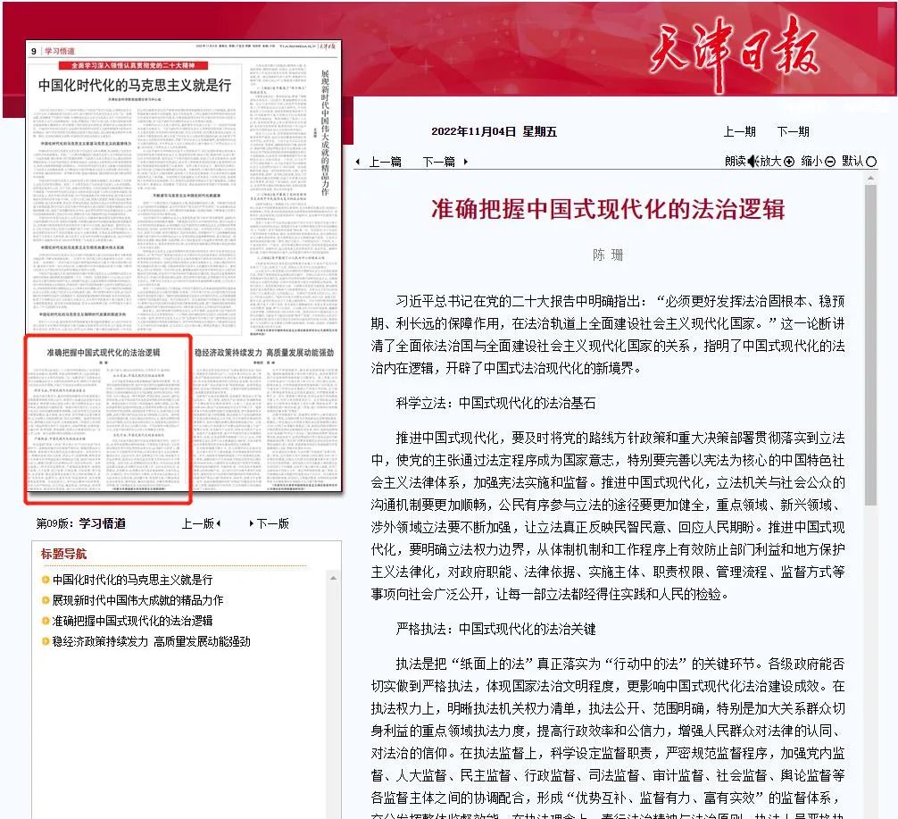 11月4日出版的《天津日报》刊发伟德官网马克思主义学院教师陈珊理论文章:《准确把握中国式现代化的法治逻辑》,原文如下。