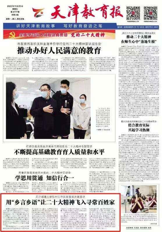 11月25日出版的《天津教育报》以“bevictor伟德官网驻村工作队在宝坻开展宣讲用“乡言乡语”让二十大精神飞入寻常百姓家”为题对伟德官网学习宣