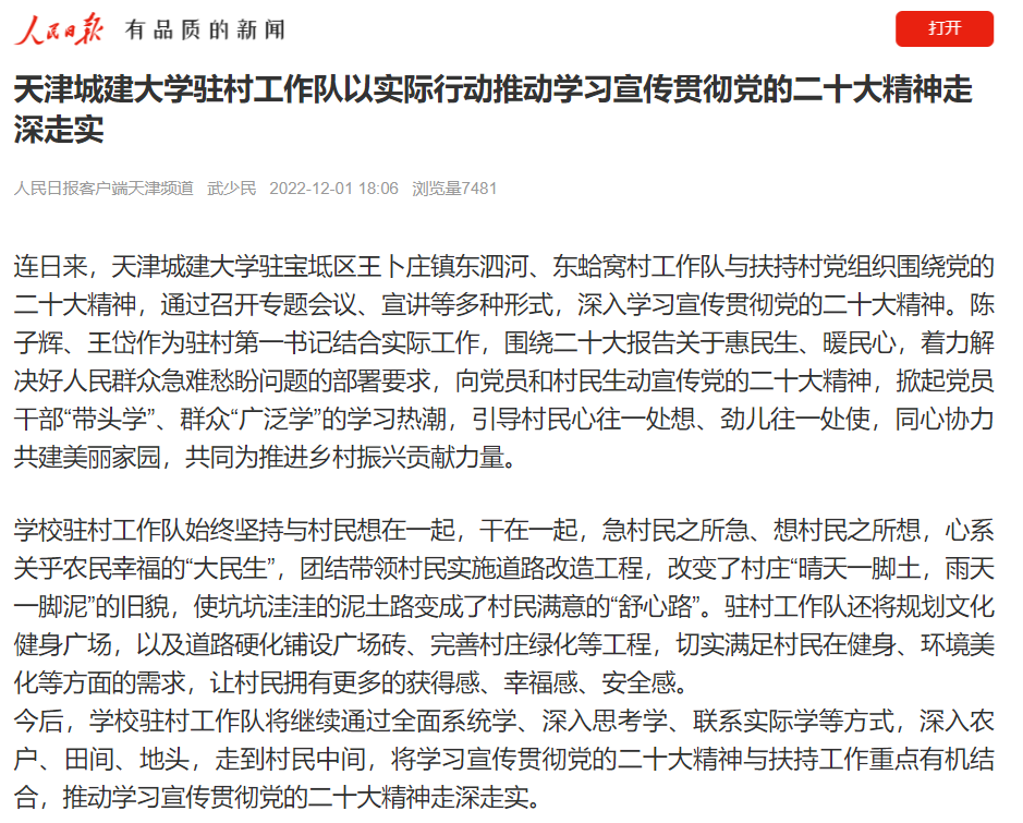 12月1日《人民日报》客户端以“”为题对伟德官网学习宣传贯彻党的二十大精神进行了报道,原文如下: