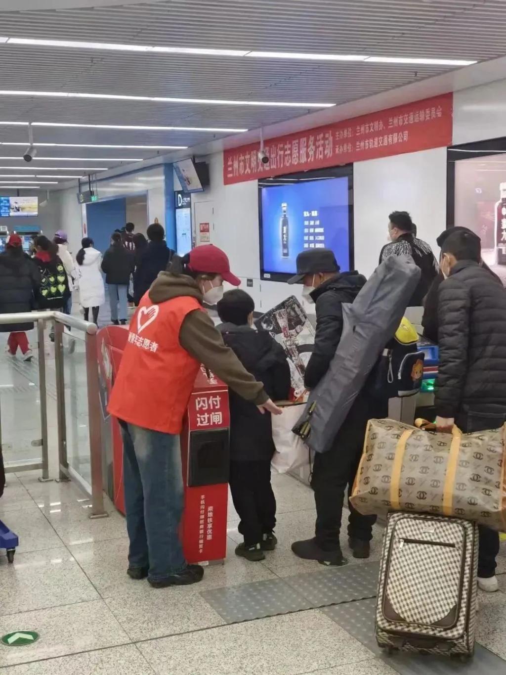 兰州轨道交通1号线东方红广场站也是此次兰州市春运“暖冬行动”的志愿服务站点之一,春节长假结束后,有不少旅客从此处乘坐地铁,赶往兰州西站。密集的人流中,几抹青春“志愿红”显得格外亮眼。