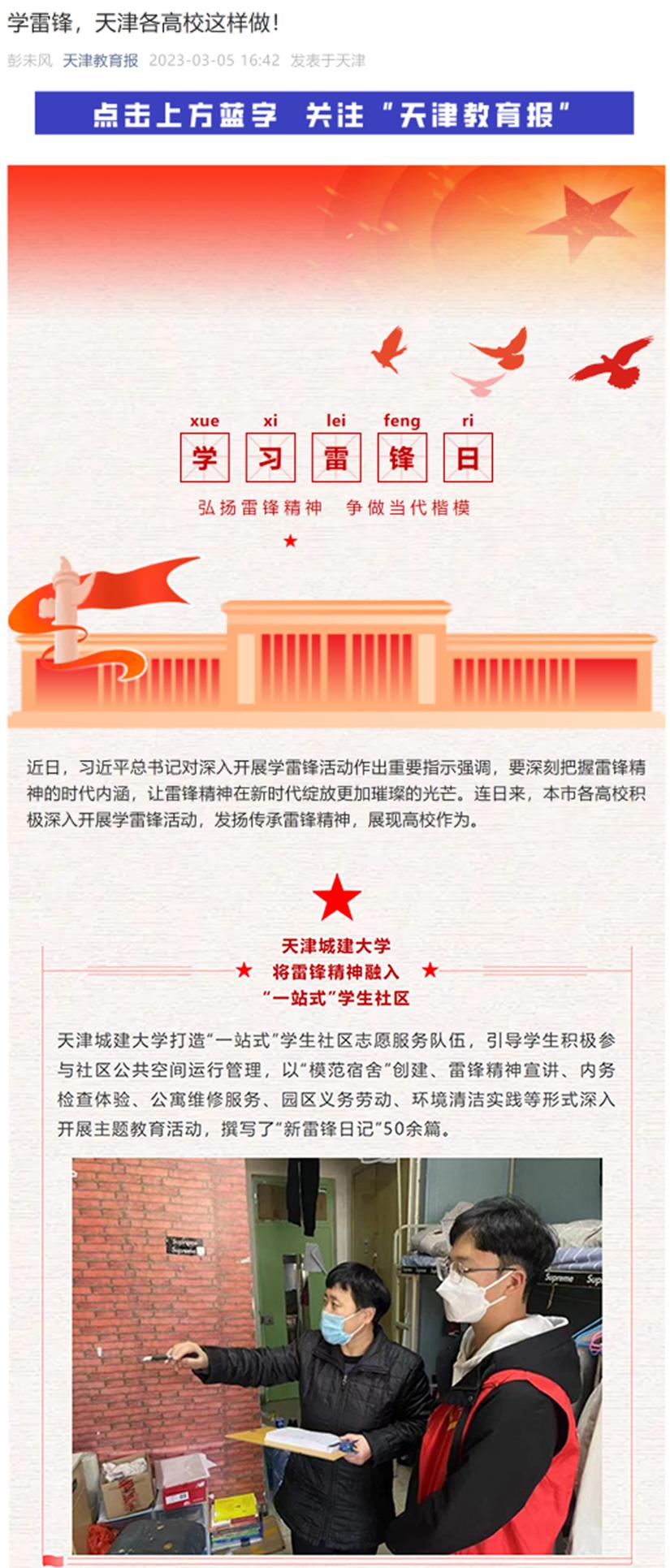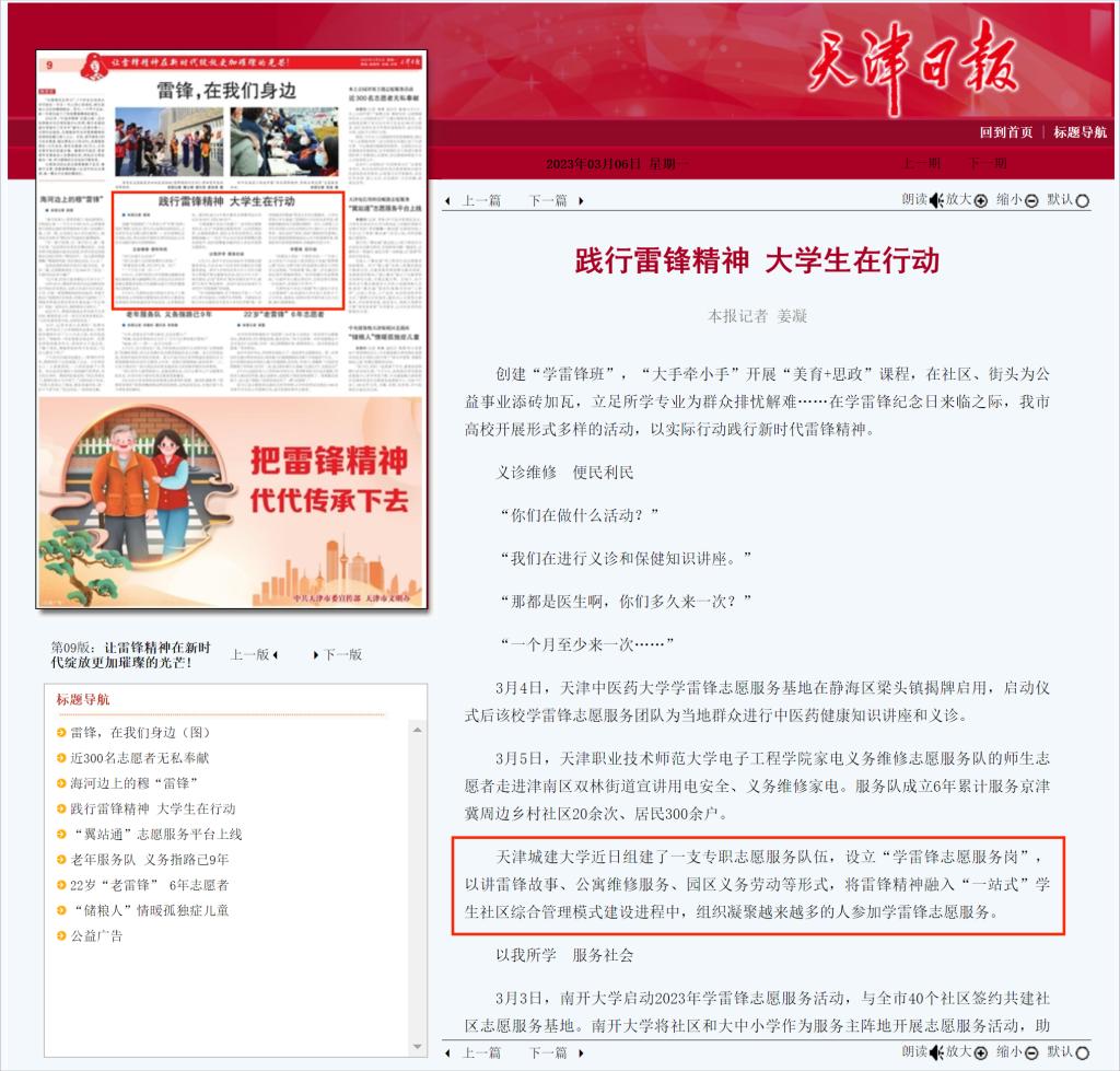 3月5日-6日,《天津日报》《天津教育报》对伟德官网践行雷锋精神,积极开展丰富多彩的学雷锋活动进行了相关报道,现将部分媒体报道汇总如下: