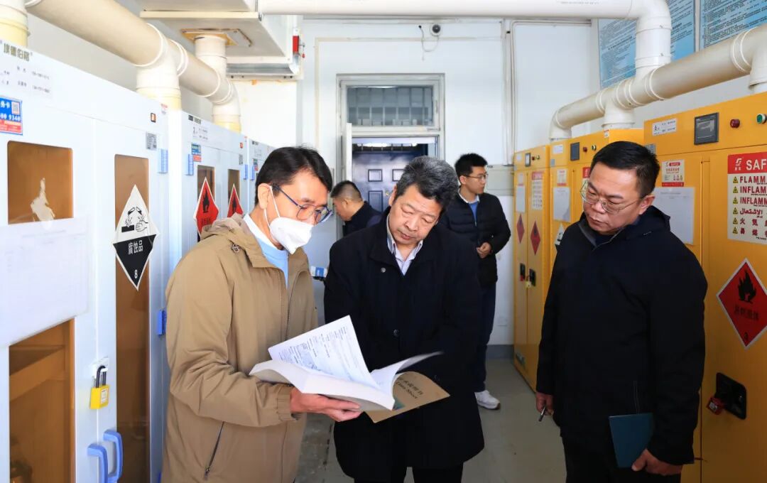 检查过程中,阎兵深入各学院危险化学品库房、实验室等安全关键区域,进行实地查看。在危化品库房,阎兵详细询问了各类危化品的采购审批流程、储存条件是否符合规范、领用登记制度是否健全、废弃品处置是否合规等细节问题。他强调,危化品库房作为安全重地,必须确保安全警示标识清晰、醒目、周全,各类消防应急设施必须配置齐全、功能完好,并定期进行检查维护,确保随时处于可用状态。