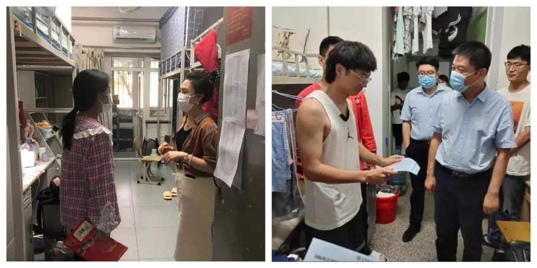 外国语学院领导班子带领学院学生工作专班深入学生宿舍进行走访,做到全体学生宿舍100%走访,100%了解情况和问题,100%给学生解答和反馈。重点针对未返校毕业生行李打包邮寄问题,进行了深入细致的解答。同时鼓励学生要加强专业知识学习,提升专业技能本领,克服疫情困难,做好学习规划。